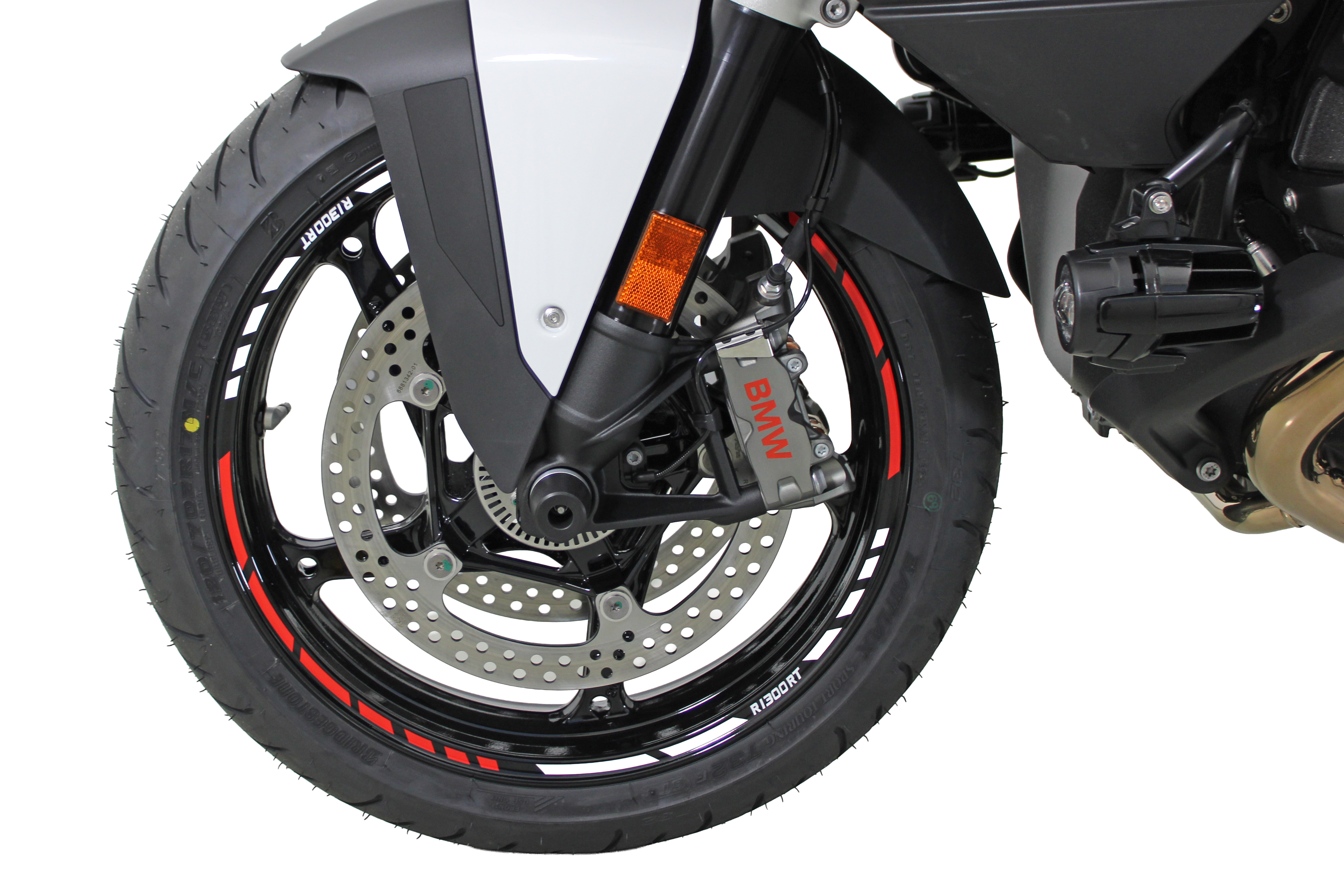 Parallel zum Komfort rücken wir bei unserem Umbau der BMW R1300RT das Thema Sicherheit klar in den Mittelpunkt. Besonders empfindliche Bauteile profitieren von gezieltem Schutz. Das stabile Kühlergitter bewahrt den Kühler zuverlässig vor Steinschlag und Verschmutzungen, ohne dabei zu flattern. Möglich macht dies ein robuster Rahmen sowie eine hochwertige Hochdruck-Klebetechnologie, die Gitter und Rahmen dauerhaft fest verbindet. Neben der Schutzfunktion entsteht damit zugleich ein optisches Upgrade an der Front. Für zusätzliche Absicherung bei Umfallern oder kleineren Stürzen setzen wir auf die Sturzpads für Gabelenden. Dadurch wird die Gabel effektiv vor Beschädigungen geschützt. Auch die Sicht auf wichtige Informationen trägt entscheidend zur Fahrsicherheit bei. Der hochwertige Blendschutz verbessert die Ablesbarkeit des Connectivity-Displays deutlich, insbesondere bei tief stehender Sonne. Ergänzend dazu verhindern Displayschutzfolien Kratzer und Beschädigungen im täglichen Einsatz, sodass das Display der BMW R1300RT dauerhaft klar ablesbar bleibt. Ein weiterer Schwerpunkt dieses Umbaus liegt auf der besseren Wahrnehmung durch andere Verkehrsteilnehmer: Der 4-teilige Reflexions-Folien-Satz für die originalen Seitenkoffer erhöht die Signalwirkung erheblich und sorgt dafür, dass die BMW R1300RT im Straßenverkehr deutlich schneller erkannt wird. Gerade bei Dämmerung, Regen oder schlechten Lichtverhältnissen steigert dies die passive Sicherheit spürbar. Wenn es um aktive Sicht und Sichtbarkeit geht, liefern die LED-Zusatzscheinwerfer, die an einem extra angefertigten Halter befestigt sind, eine besonders wirkungsvolle Lösung. Die moderne LED-Technologie sorgt nachts für eine extrem helle Ausleuchtung der Fahrbahn und verbessert gleichzeitig am Tag die Erkennbarkeit des Motorrads. Der extrabreite Lichtkegel leuchtet zusätzlich den Straßenrand aus, was gerade auf Landstraßen einen klaren Sicherheitsvorteil bringt. Hochleistungs-LED-Chips, ein stabiles Aluminiumgehäuse und die robuste Befestigung stehen dabei für Langlebigkeit und Qualität.