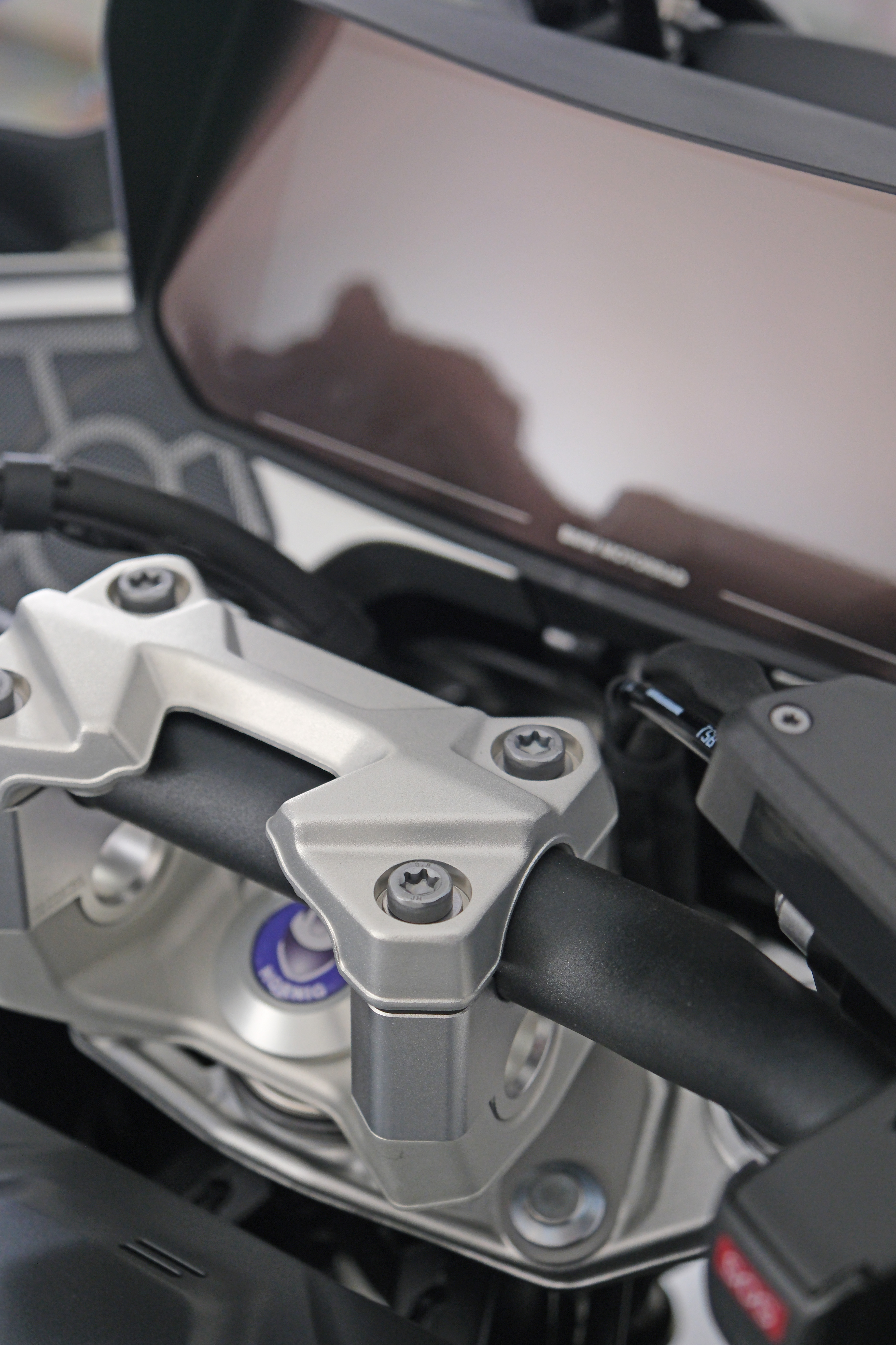 Den Anfang macht der Bereich Komfort: Die Schalthebelvergrößerung sorgt dafür, dass der Fuß spürbar mehr Auflagefläche erhält und der Schaltvorgang deutlich sicherer und angenehmer gelingt, was gerade auf langen Touren für entspannteres Fahren sorgt. Gleichzeitig wirkt die Optik sportlicher, wodurch die BMW R1300RT zusätzlich an Dynamik gewinnt. Auch beim Abstellen wird der Vorteil durch unser Zubehör sofort spürbar. Die Seitenständervergrößerung vergrößert die Standfläche deutlich und sorgt so dafür, dass die BMW R1300RT auch auf losem Untergrund oder unebenen Flächen wesentlich stabiler steht. Die präzise gefertigte Aluminiumlösung fügt sich harmonisch ins Gesamtbild ein, lässt sich schnell montieren und steigert die Alltagstauglichkeit erheblich. Für eine entspannte Körperhaltung auf langen Strecken wurde zudem der Lenkerbereich optimiert. Die Lenkerendgewichte aus Edelstahl verbinden eine edle Optik mit funktionalem Mehrwert, ohne die Breite des Motorrads zu verändern. In Kombination mit der Lenkererhöhung, die den Lenker um 35 Millimeter anhebt, ergibt sich eine deutlich ergonomischere Sitzposition. Schultern und Handgelenke werden entlastet, während die Kontrolle über die BMW R1300RT spürbar verbessert wird - ein Komfortgewinn, der auf jeder Tour überzeugt. Damit die moderne Touring-Ausstattung der BMW R1300RT auch technisch optimal genutzt werden kann, wurde die Maschine durch praktische Elektronik-Lösungen ergänzt. Das Wireless Charger Ladepad passt perfekt in das kleine Ablagefach und ermöglicht kabelloses Laden des Smartphones, einfach durch Auflegen. Mit bis zu 15 Watt Ladeleistung bleibt das Gerät zuverlässig versorgt, ohne dass störende Kabel im Cockpitbereich hängen. Da die Ladeelektronik im USB-Kabel untergebracht ist, erwärmt sich das Ladepad während des Ladevorgangs nicht. Ergänzend dazu sorgt die passgenaue GPS-Halterung dafür, dass das Navigationsgerät schnell befestigt oder entfernt werden kann - vibrationsfrei und mit optimaler Display-Ablesbarkeit selbst bei höherem Tempo.
